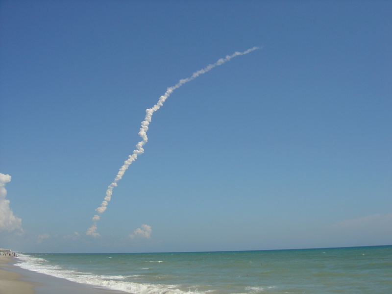 We went to the beach to see the Shuttle launch. The ocean pics just before the launch are us trying to get of sea turtles. The sky pics are of the seperation of the tanks. When the launch pics repeat it is because it is from another camera.